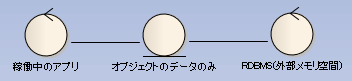 これをクラス図に描くと次のようになります。RDBユーティリティクラスが、受注伝票や発注伝票の属性値のみ(データ)をRDBMSとの間で受け渡しします。アプリケーションが稼働しているメモリ空間の外にRDBMSはあります。